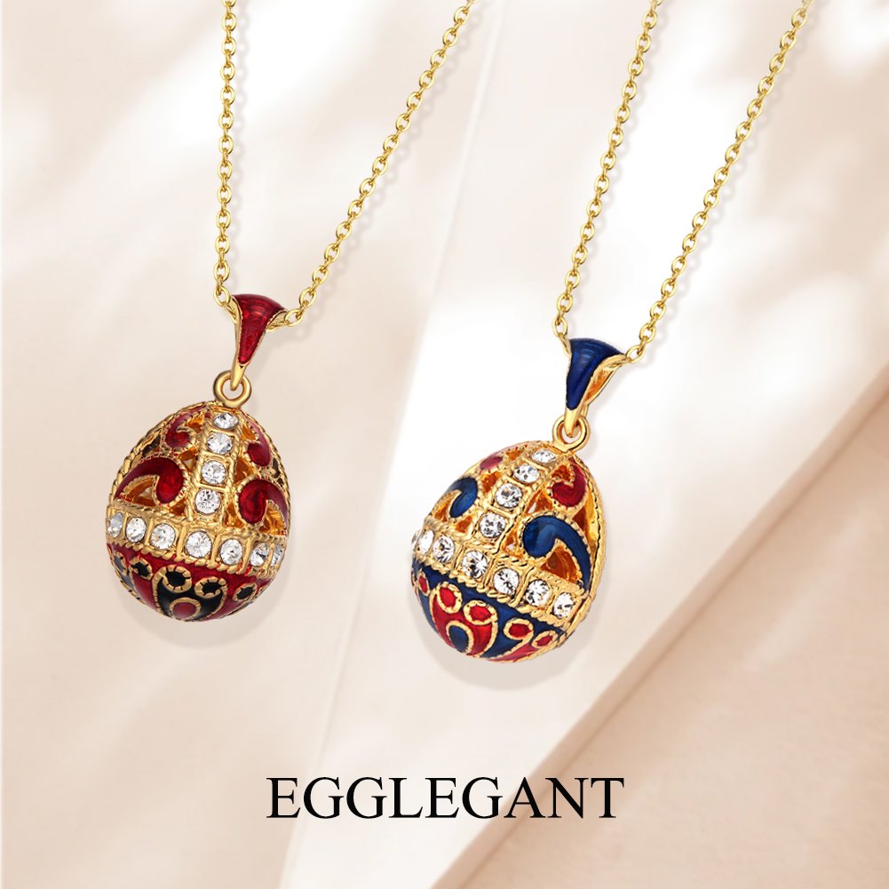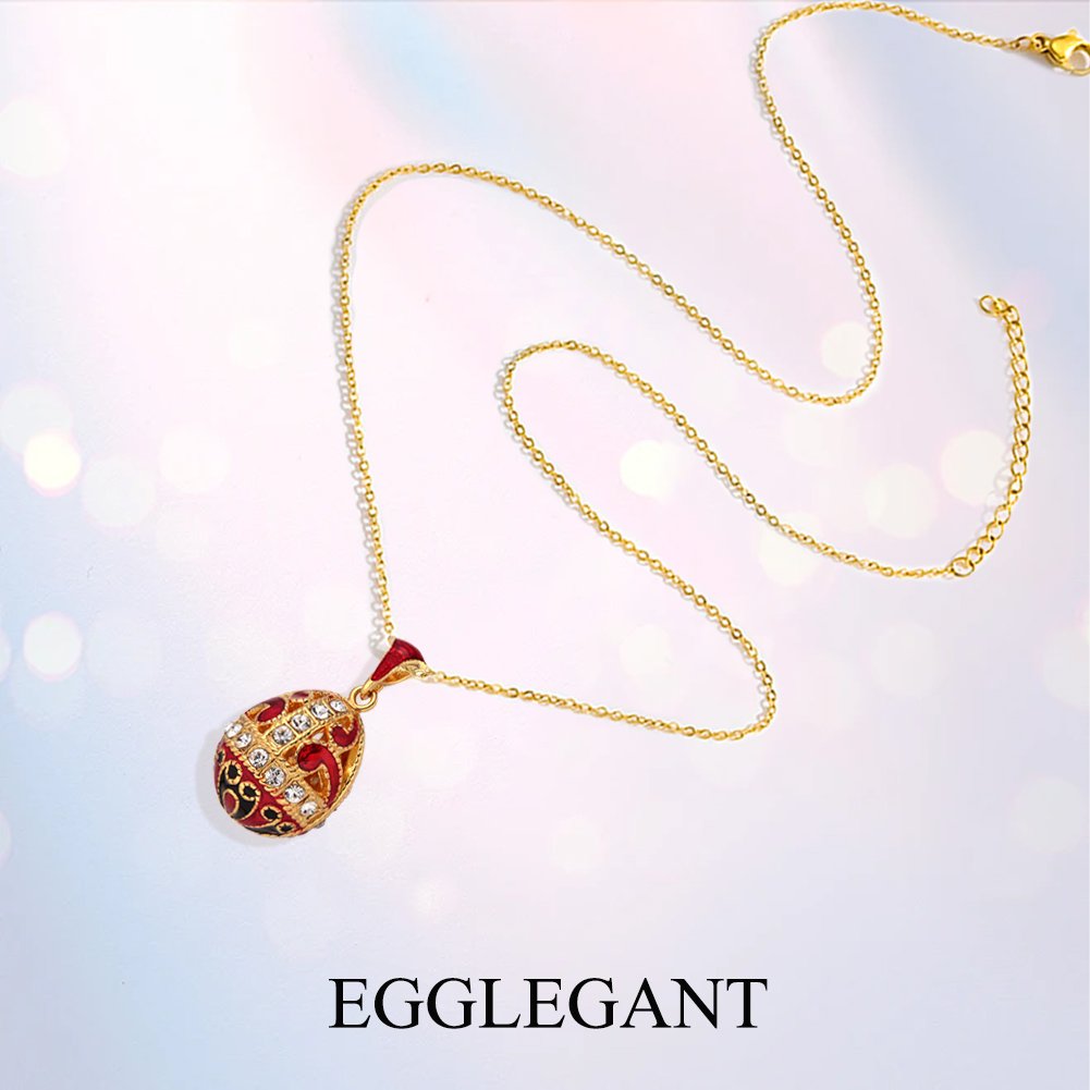 Enamel Hollow Inlaid Rhinestone Egg Pendant Necklace—— Let a sparkle of brilliance rest upon your heart, wear art around your neck, and radiate unique charm at every moment.