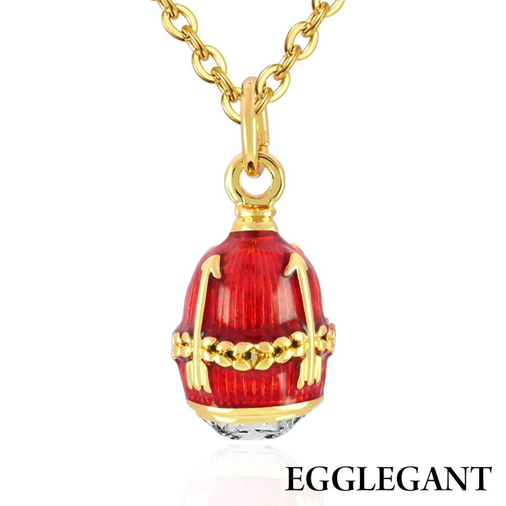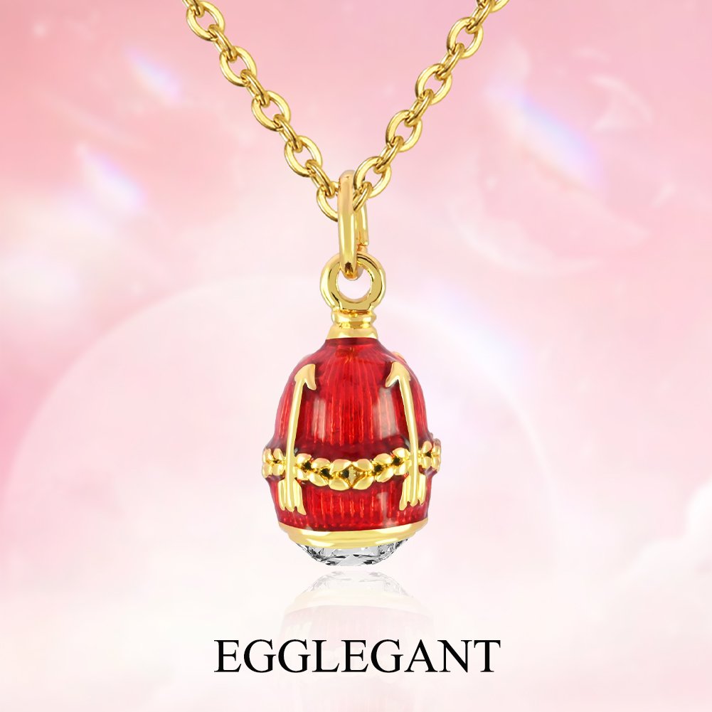 This exquisite pendant features a vibrant crimson red enamel finish, meticulously applied to a classic egg-shaped silhouette. The deep, rich tones of the enamel are beautifully contrasted by intricate gold-toned arrow motifs that wrap around the piece, symbolizing direction, passion, and precision.