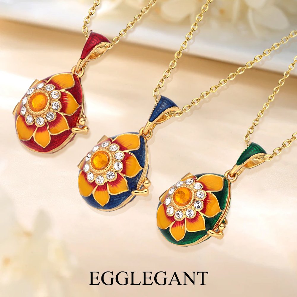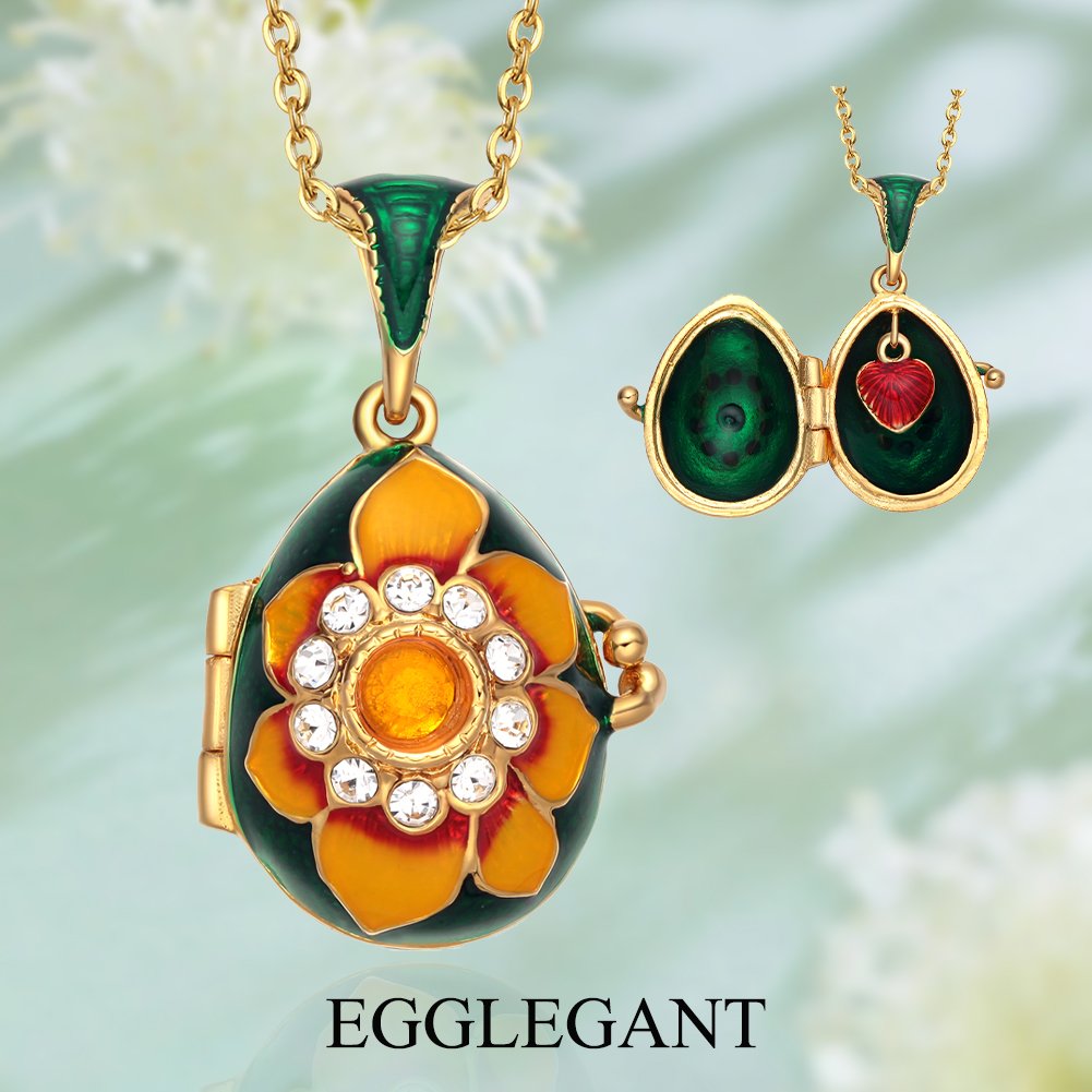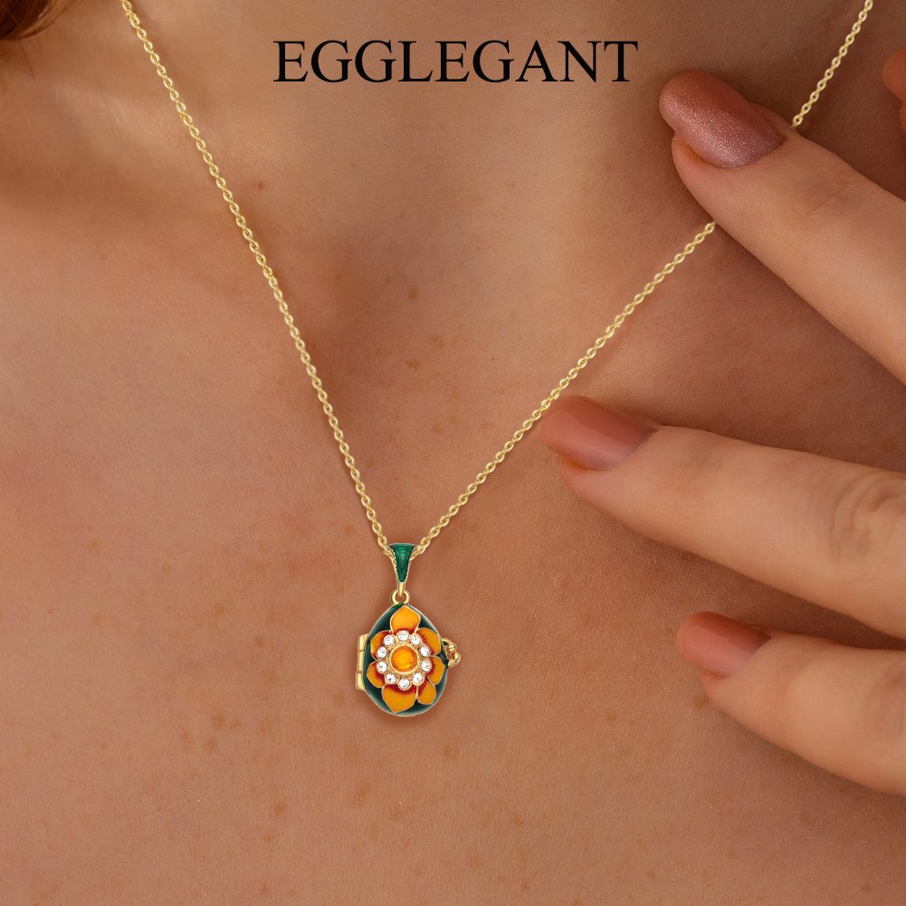 让每一个惊喜都如花朵般绽放。这款手工珐琅向日葵蛋形吊坠不仅是一件饰品,更是一座可以开启的“秘密花园”。它完美融合了复古的蛋形艺术与明艳的向日葵元素,旨在为您的日常穿搭增添独特的艺术气息。