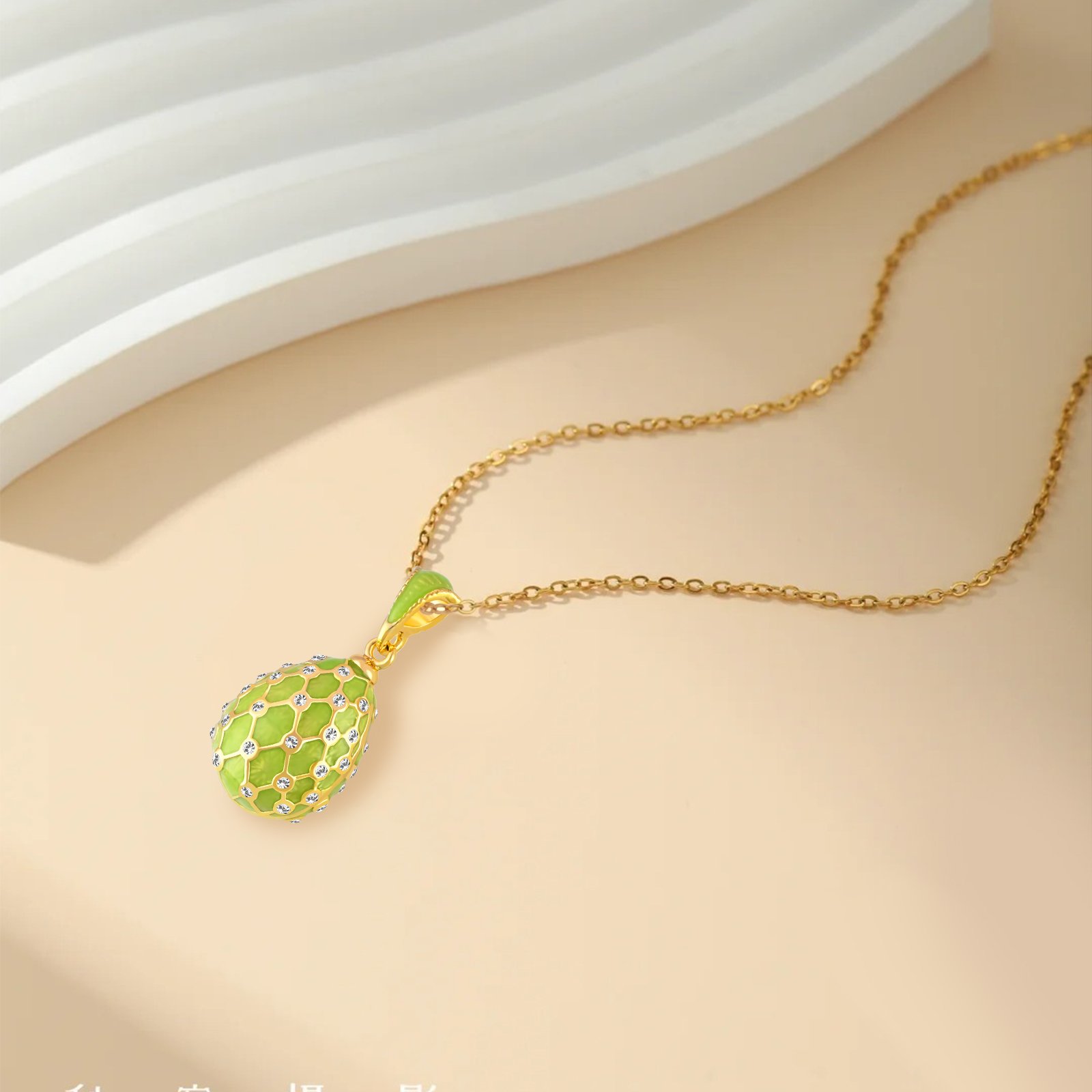 Whether you are layering it with other gold chains or letting it stand alone as a pop of color against a black dress, the Luminous Enamel Fluorescent Egg Pendant is your ultimate conversation starter.